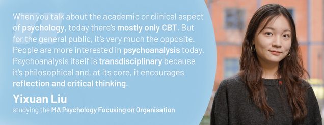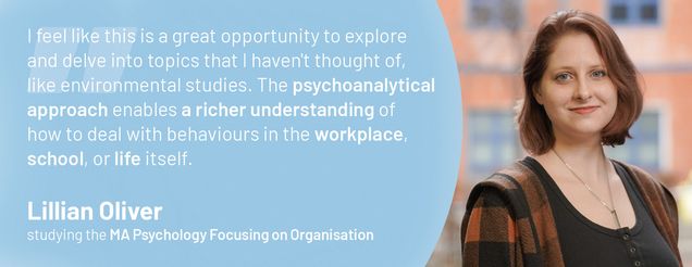 This MA Psychology program is targeted at bachelor graduates in psychology or economics and related fields who wish to pursue a career within the field of organisational psychology while implementing a psychodynamic perspective. Whether it be NGOs, governmental agencies, environmental organisations or other directions, this MA program will excellently prepare you for a diverse professional life and career.